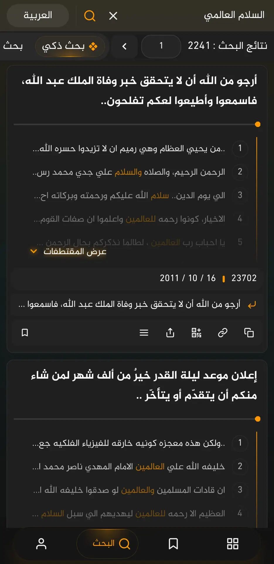 سهولة في العثور على ترجمات البيان والدخول اليها. من خلال صفحة عرض البيان.